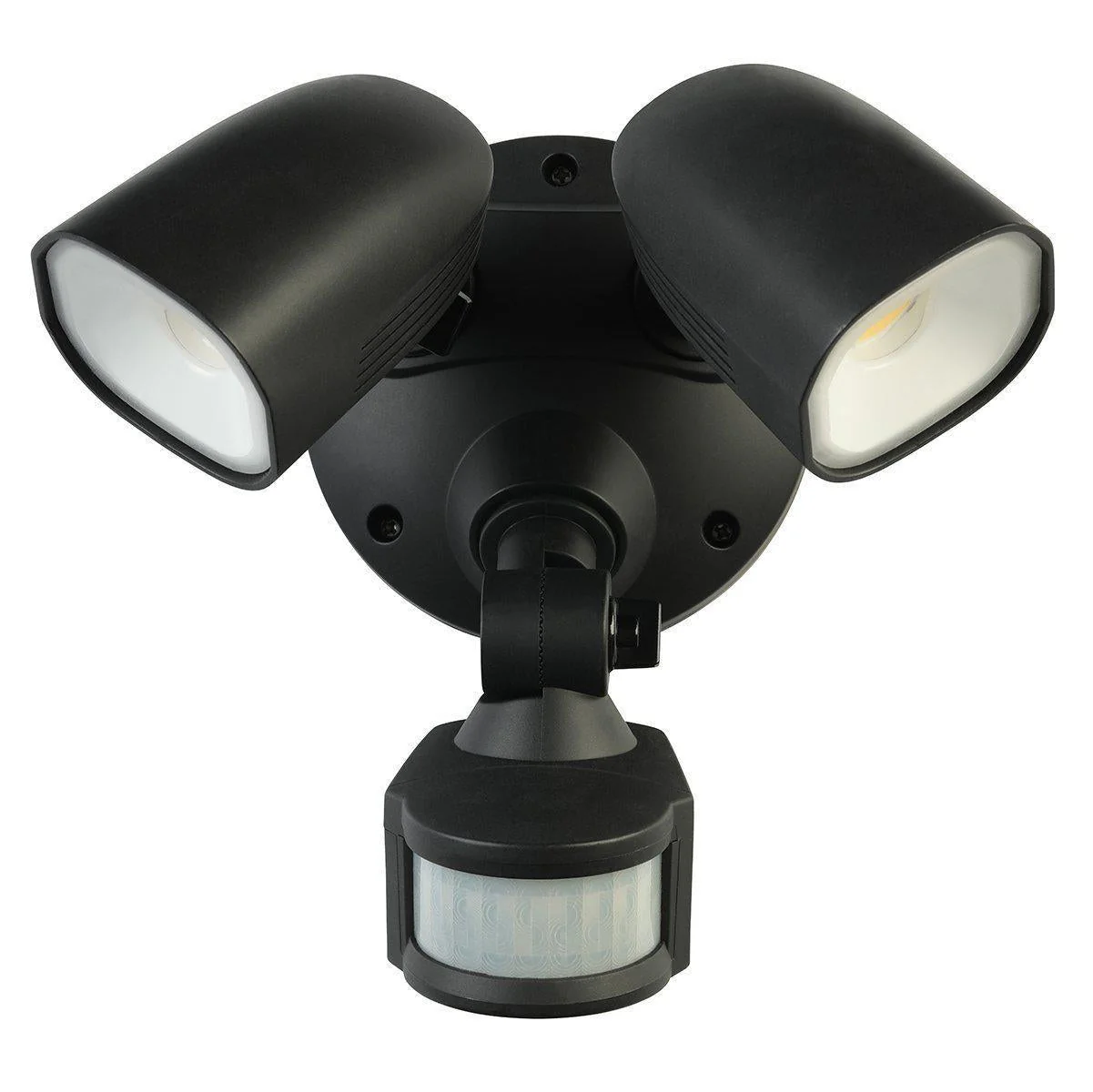 Brilliant SHIELDER - 2x10W LED Twin Head Adjustable Exterior PC Spotlight With Sensor IP54 - 4200K